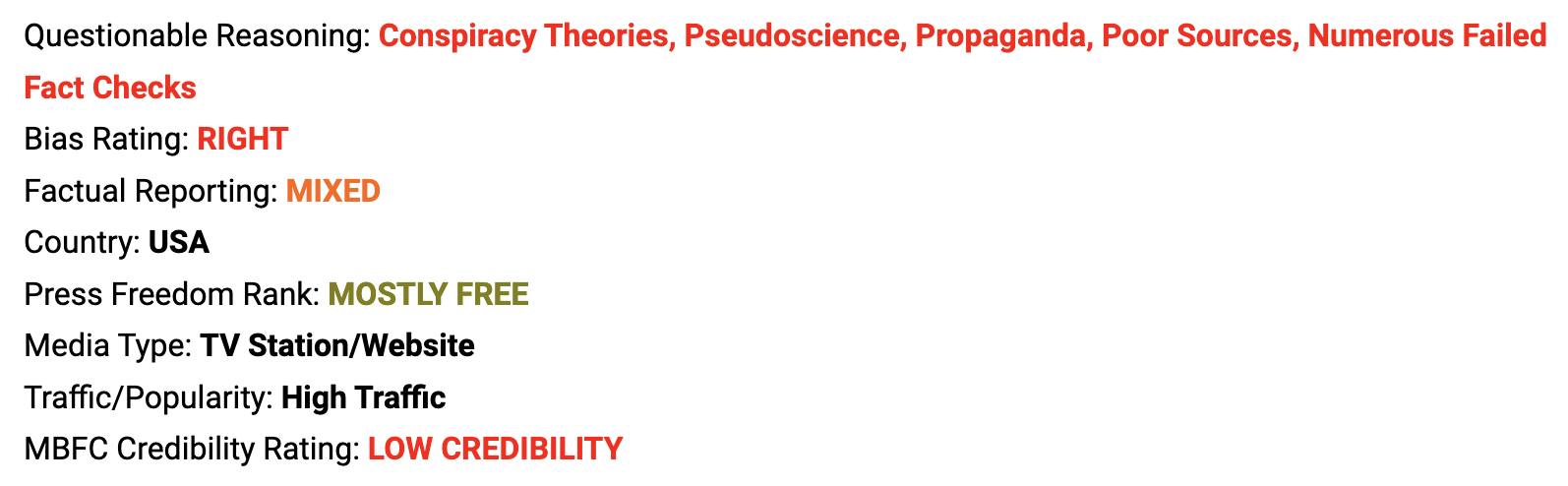 - Quote from an email from Dave Van Zandt, Founder/Editor in Chief, Media Bias Fact Check LLC