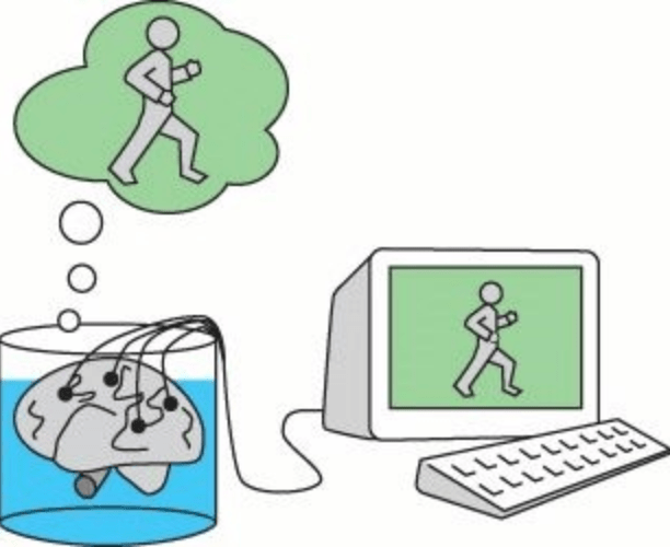 - You have undergone an operation in which your brain is removed and stored in a vat of nutrients that keeps it alive. The nerve endings of your brain are connected to a supercomputer that runs a program sending electrical impulses that stimulate the brain in the same way that brains are stimulated when perceiving external objects. So your conscious experiences are indistinguishable from the experiences you had before the operation. But you no longer have a body or see real objects or converse with other people, though it seems you do.
