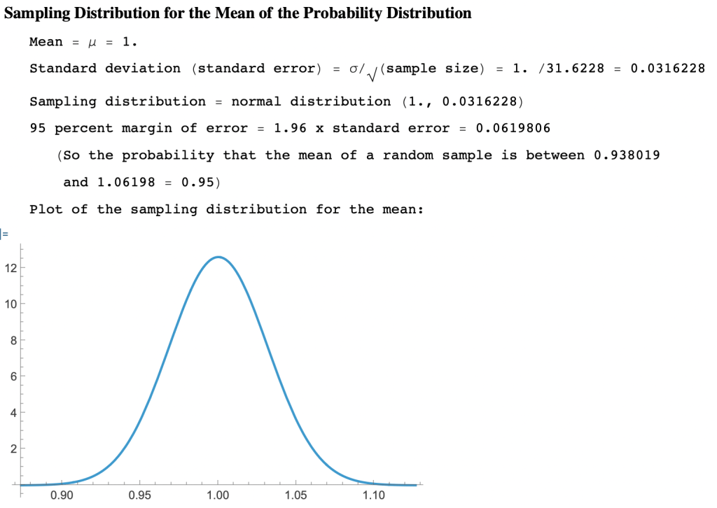 - The sampling distribution for the normal distribution [70,4], with n = 1000, is the probability distribution for the average of 1,000 independent instances of the distribution, which, per the CLT, is approximated by normal distribution with mean μ = 70 and standard deviation σ /√n = 0.126