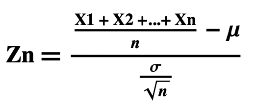 - Let X1, X2,…,Xn be independent, identically distributed random variables, each with mean = μ and standard deviation σ. Then, for any real number 𝒂,