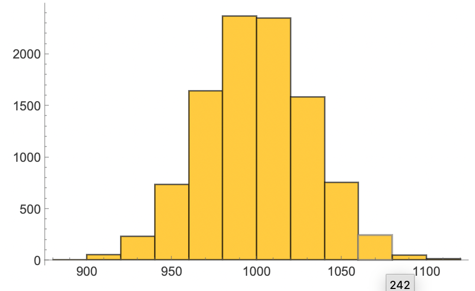 - Thus the distribution for the sum of 1,000 Bernoulli distributions is quickly calculated using the binomial distribution.