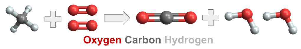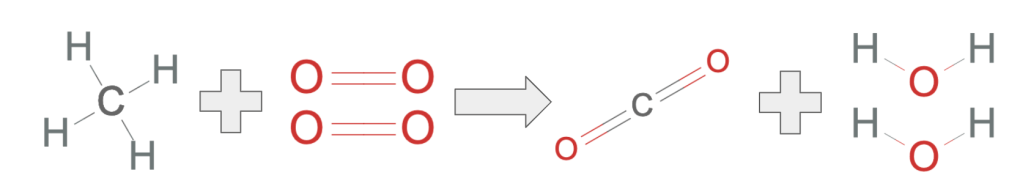 - CH4(g) + 2O2(g) → CO2(g) + 2H2O(g) + Energy