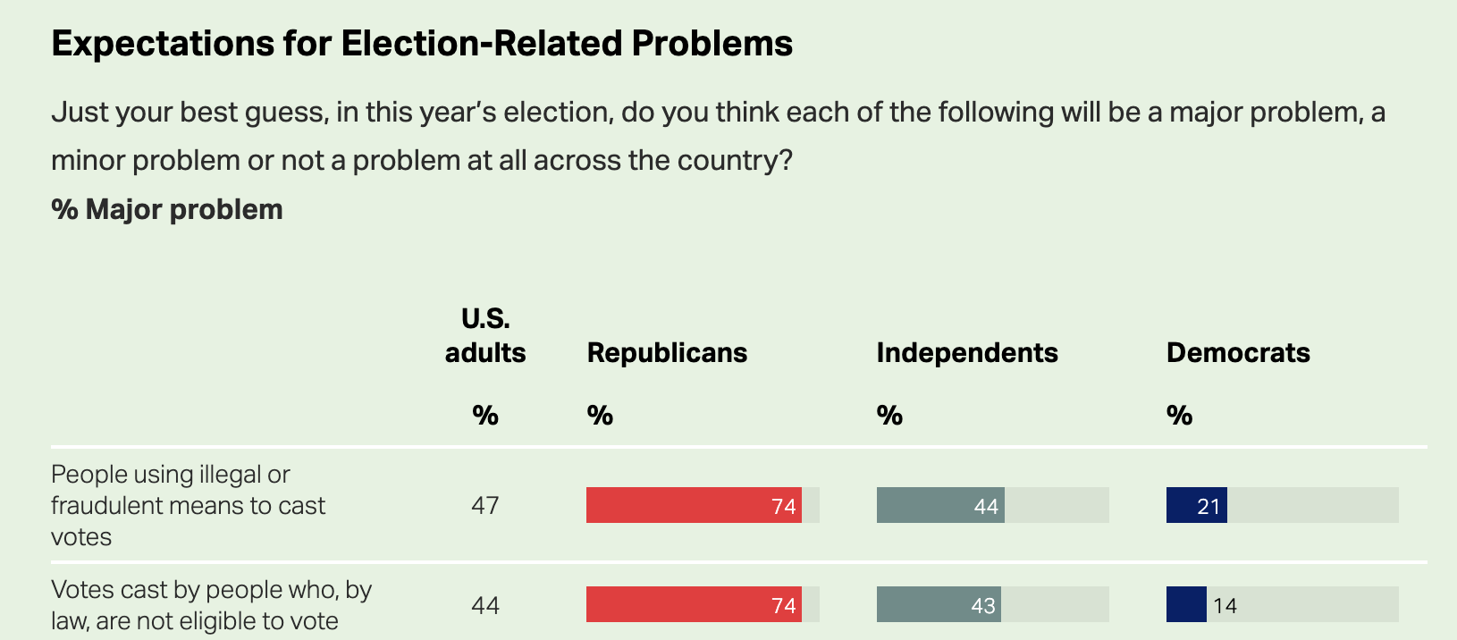 - Partisan Split on Election Integrity Gets Even Wider Gallup (Sep 25, 2024)