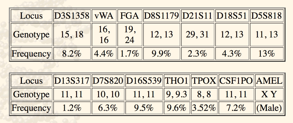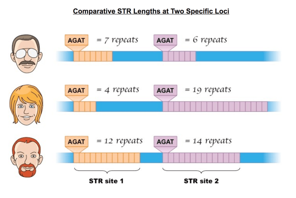 - A DNA Profile consists of a list of certain STR locations coupled with the number of repeats at each location.