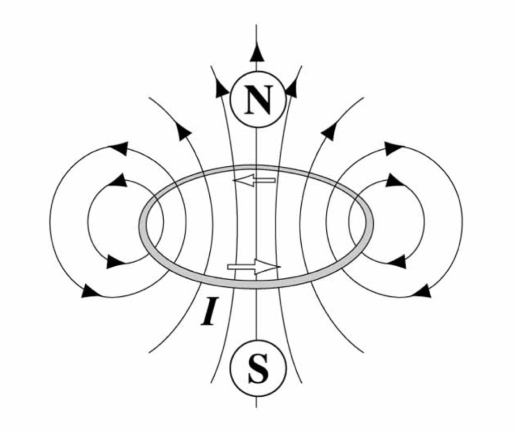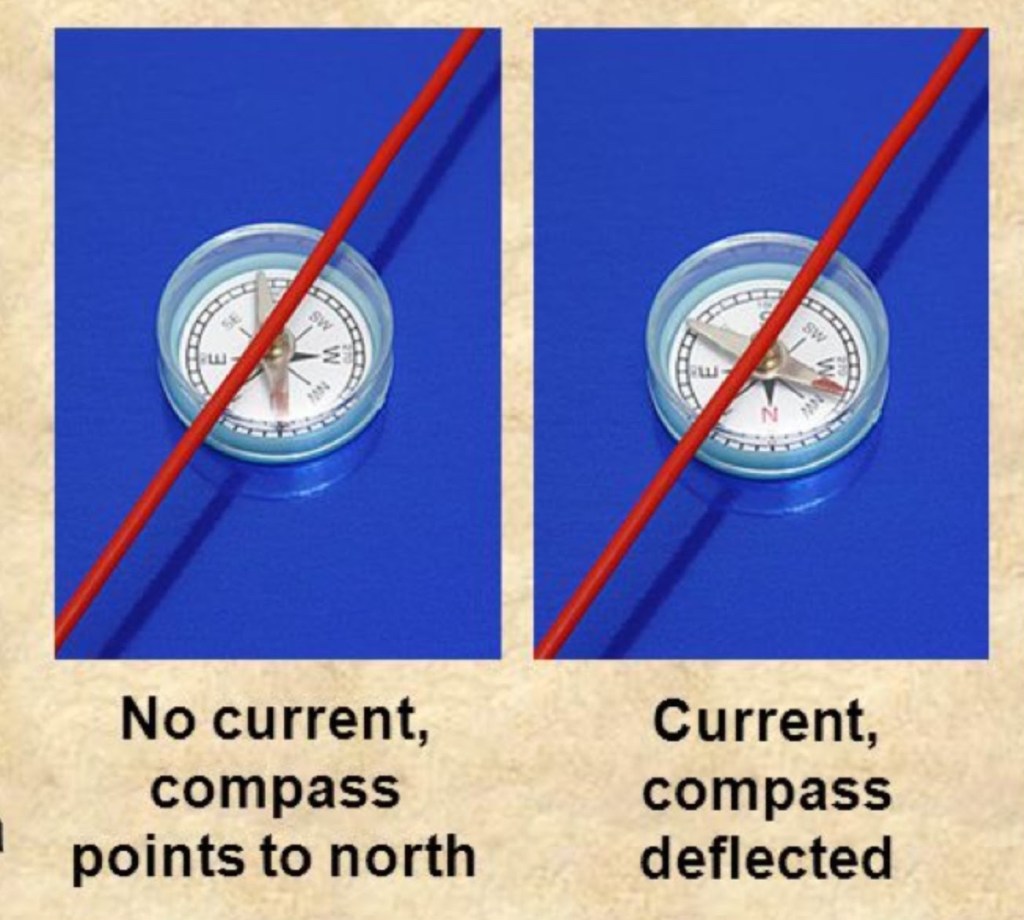 - While setting up apparatus for a lecture, Ørsted noticed that the magnetic needle of compass near a current-carrying wire aligned itself perpendicular to the wire.