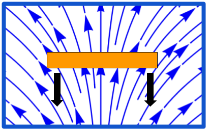 - An electric current passes through a coil of wire in a magnetic field. Per the Lorentz Force Law, electrons moving through a magnetic field experience a sideways force. The current going in one direction in the coil (green arrows in the diagram) experiences an upwards force (red arrows). The current going in the reverse direction experiences a downwards force. Combined, the forces make the coil rotate.