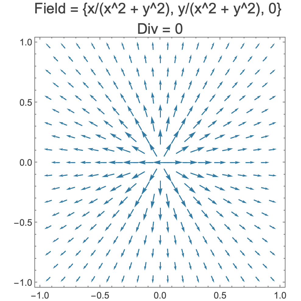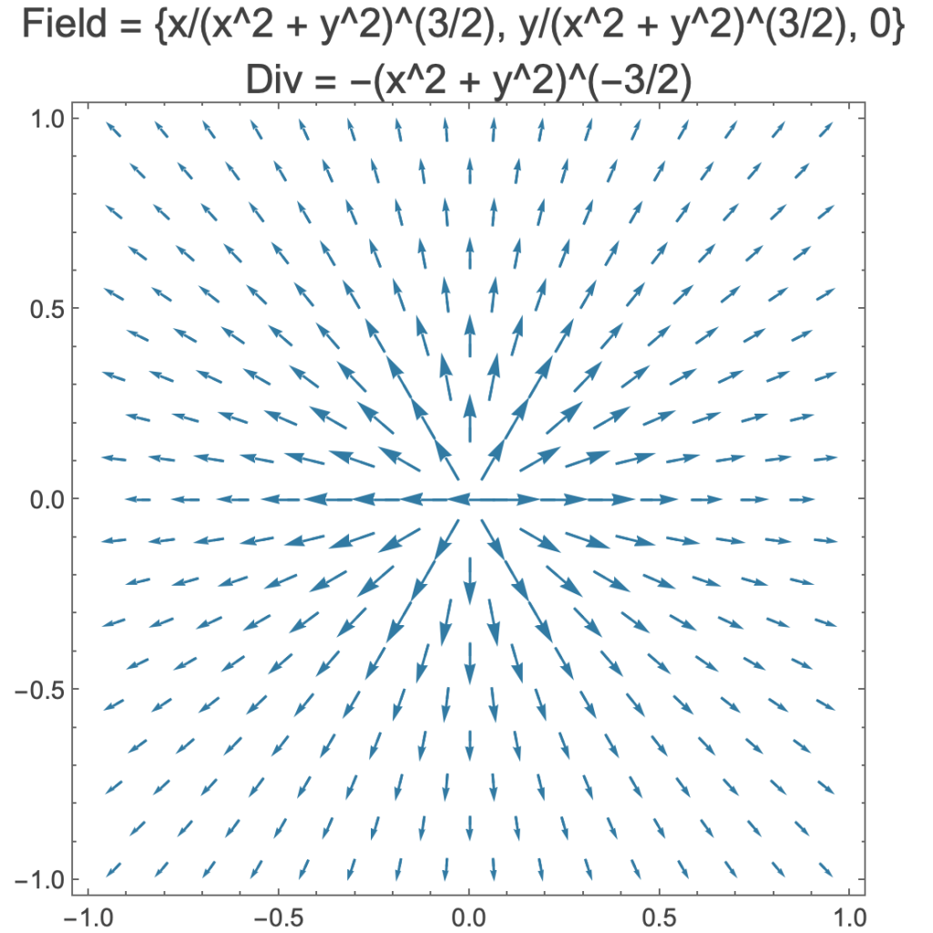- div is divergence, the degree that a vector field emanates from or disappears into a given point