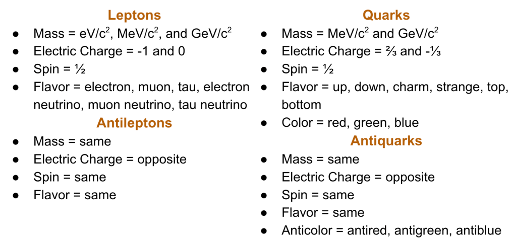 - Six Antileptons, antimatter versions of the six flavors leptons.