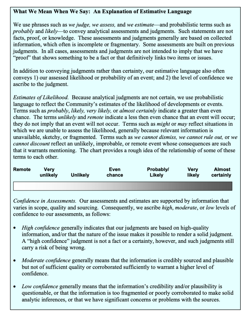 - From a National Intelligence Estimate: