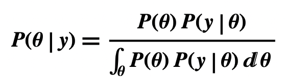 - the denominator is the integral of P(θ)P(y|θ) for all values of θ.