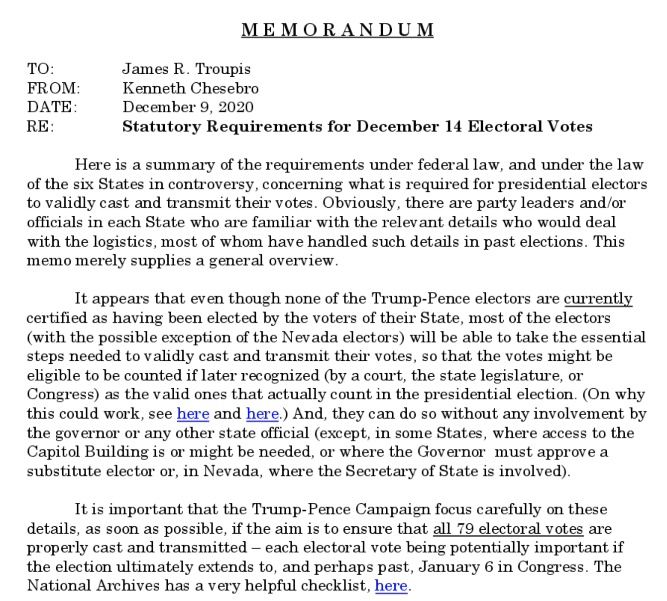 - Kenneth Chesbro’s Memoranda Setting Forth the Fake Elector Plan
