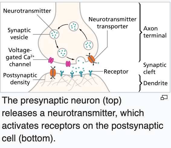 - Whether a neuron fires depends on the amount and kind of neurotransmitter molecules it receives from its presynaptic neurons.