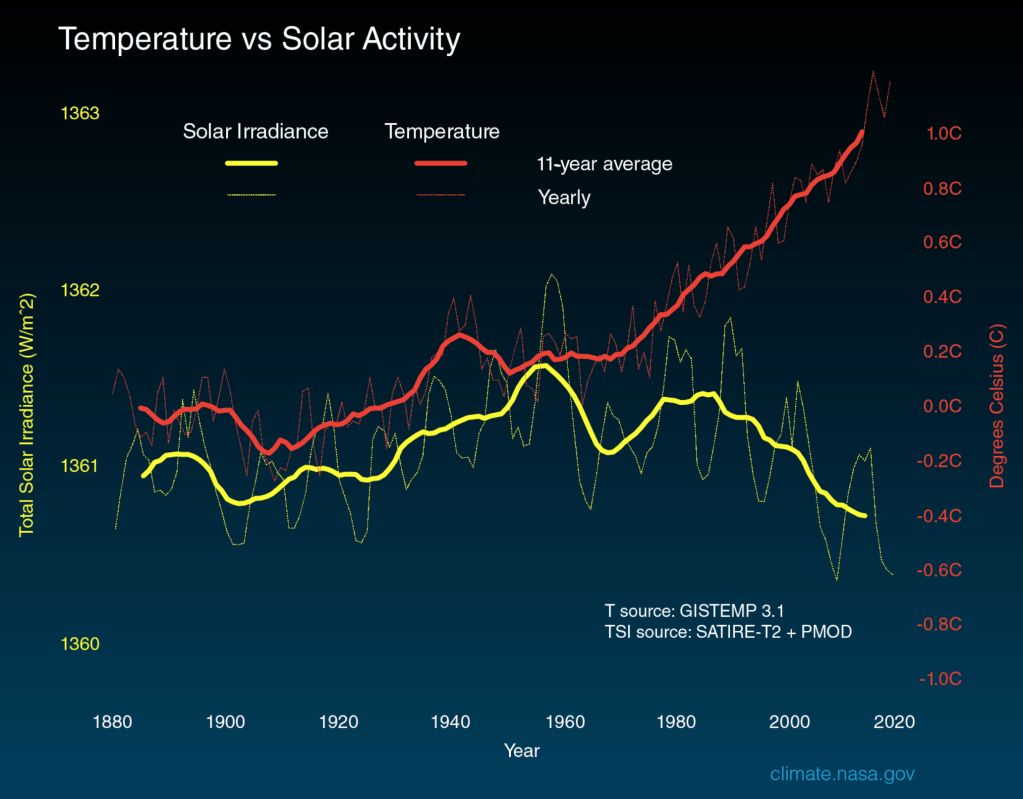 Variations in Solar Output- Is the Sun causing global warming? (NASA at climate.nasa.gov/faq/14/is-the-sun-causing-global-warming/)
