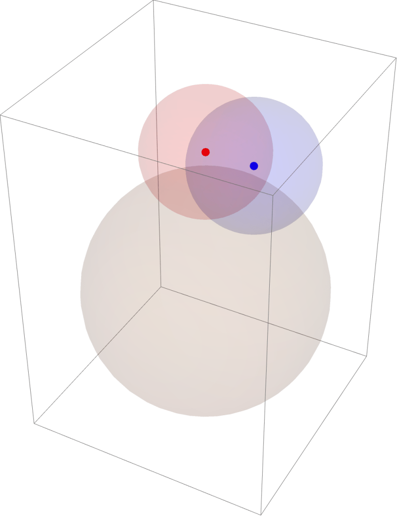 - The Blue Sphere intersects the Earth-Red circle at two points, narrowing the location of the GPS receiver to two points on the Earth’s surface.