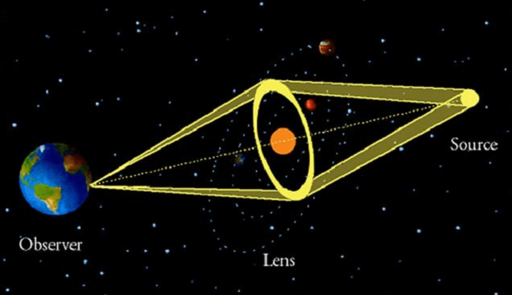 - “The first gravitational lens was discovered in 1979, when two quasars were discovered very close to each other in the sky and with similar distances and spectra. The two quasars were actually the same object whose light had bee