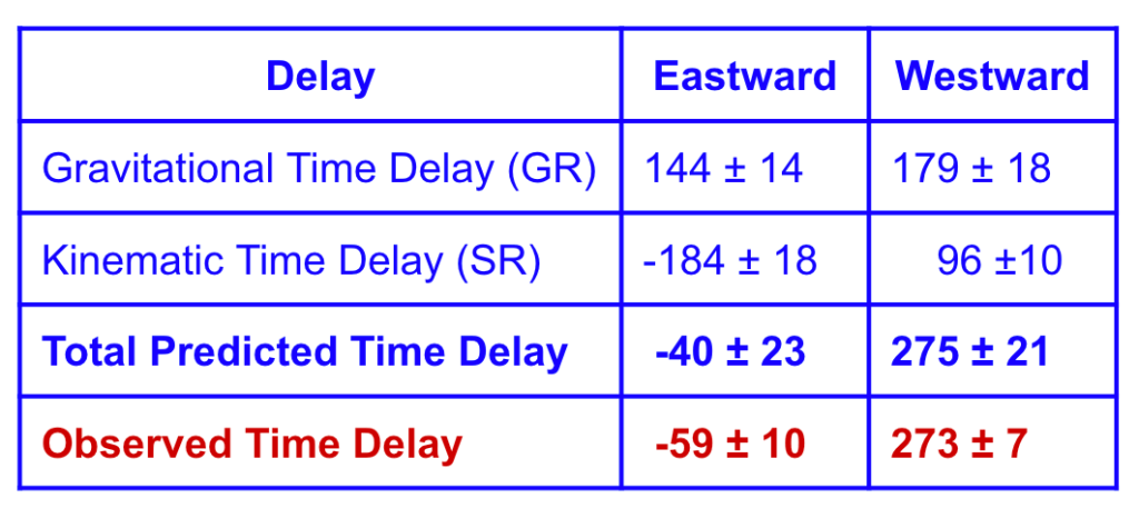 - Based on both Special Relativity and General Relativity they predicted the following nanosecond increases on the flying clocks relative to clocks on Earth: