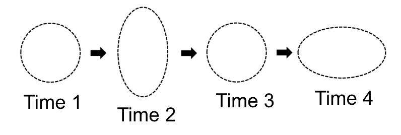 - A gravitational wave passing through a ring of particles expands and contracts space so that the particles deform vertically into an ellipse, back to a circle, horizontally into an ellipse, back to a circle, and so on.
