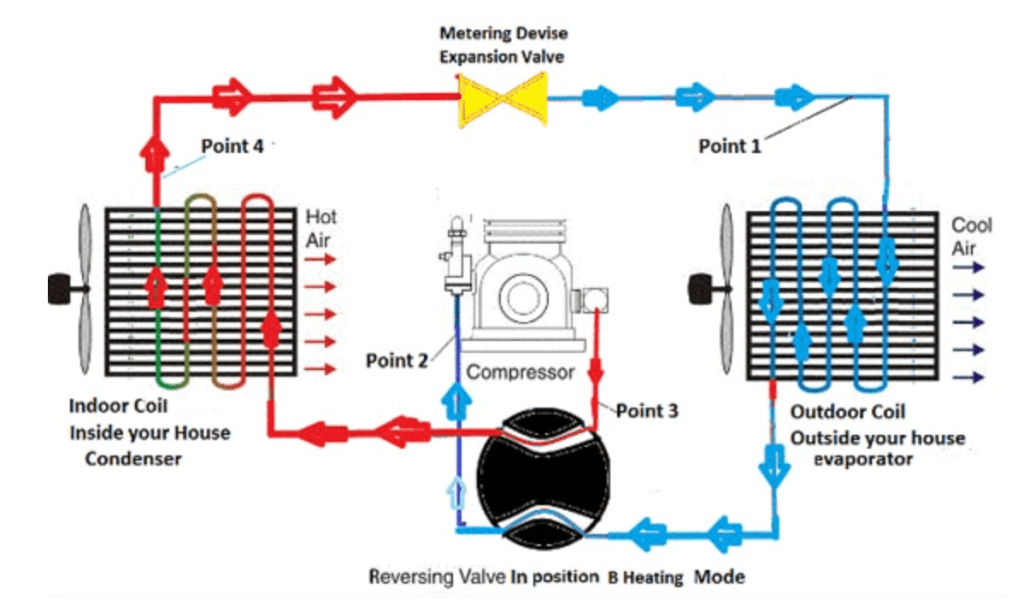 - Heating Mode: Reversing Valve in Position B
