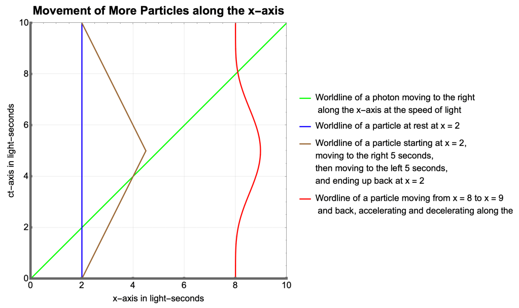- A world line is the path of an object through spacetime (in units of length).