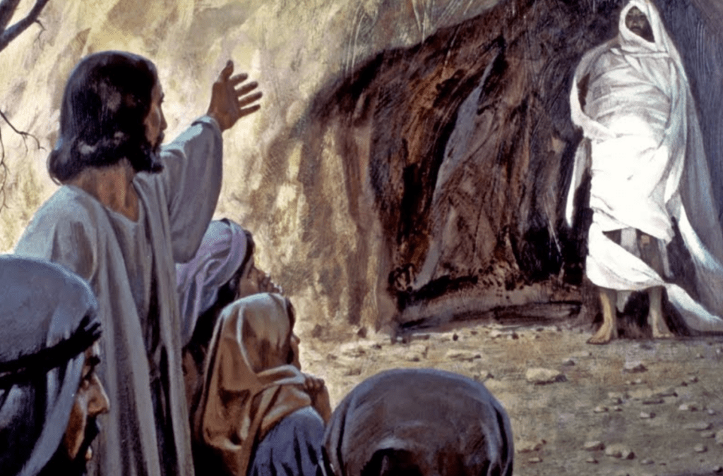 - According to the Gospel of John Lazarus of Bethany died of an illness and his body put in a tomb. Jesus of Nazareth arrives in town four days later. Accompanied by Jewish mourners, Jesus has the stone rolled away from the tomb and tells Lazarus to come out. Lazarus appears, still wrapped in his burial clothes.