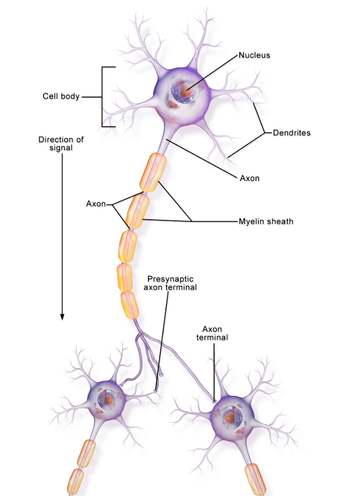 - The axons of most neurons are wrapped in an insulating layer of Myelin sheath, that acts like electrical tape.