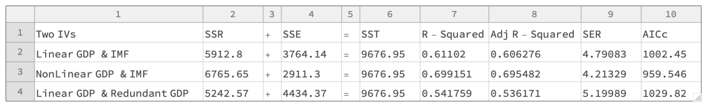 - Linear Regression on GDP and Redundant GDP (1/3 times GDP)