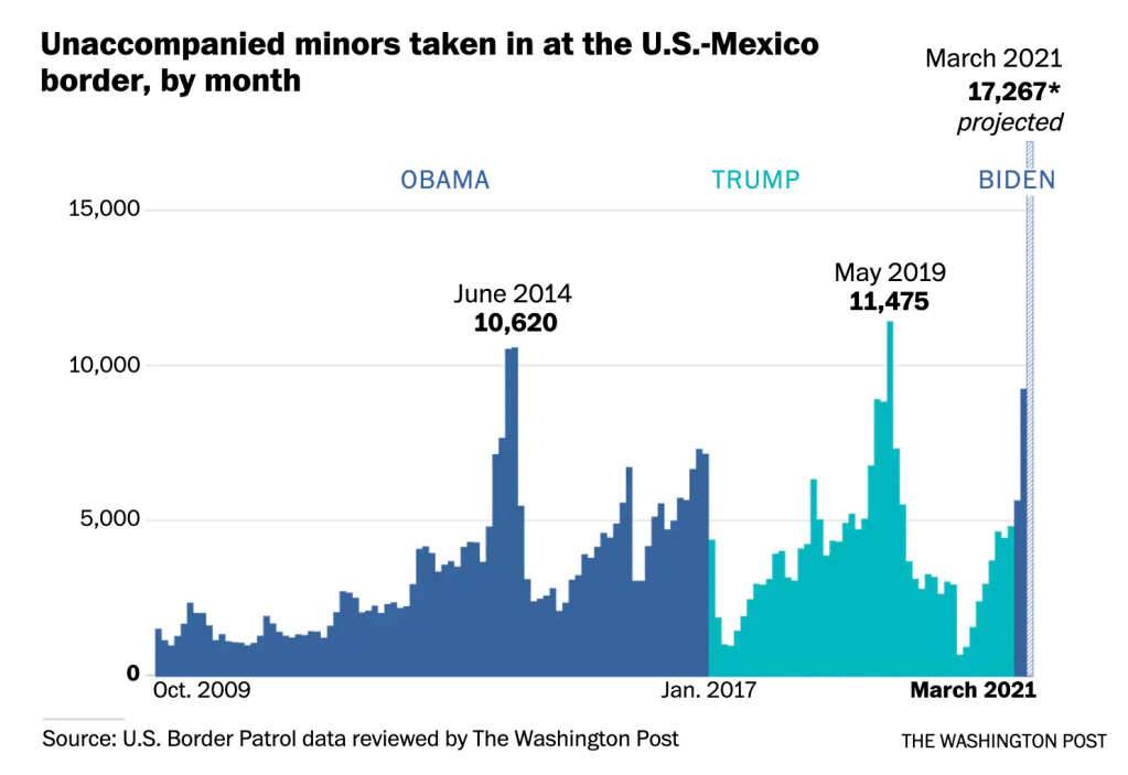 - There’s no migrant ‘surge’ at the U.S. southern border. Here’s the data. WaPo March 23